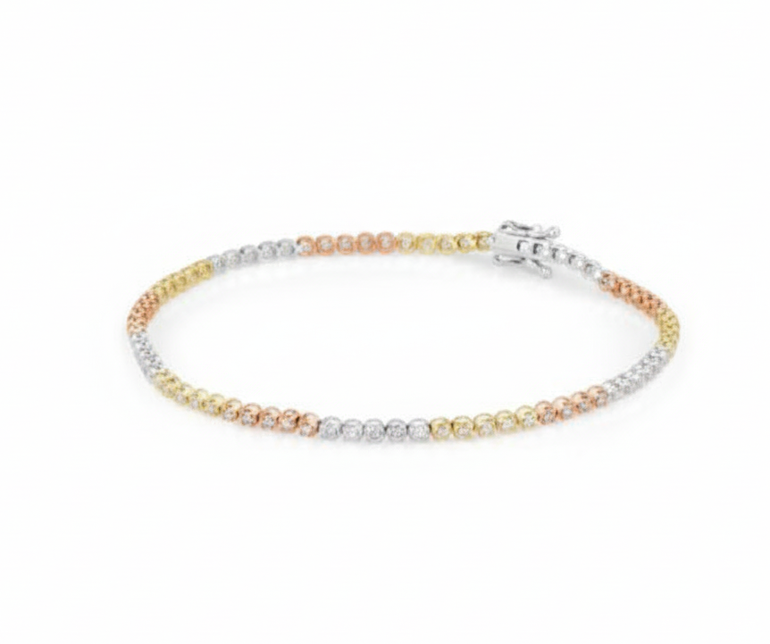 18cm length 3 tone diamond tennis bracelet with 1.00ct TDW.