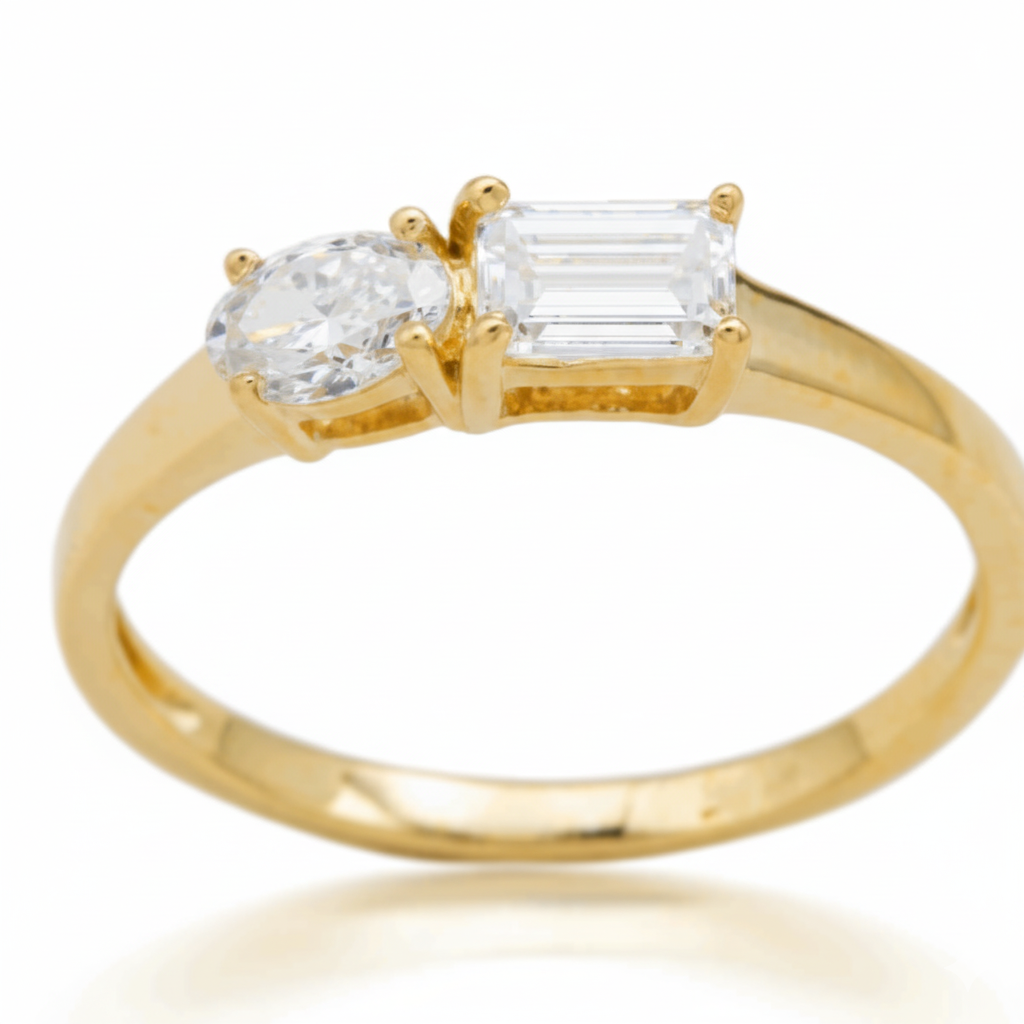 RING 9KY LAB GROWN OVAL+ EM CUT TDW=0.50CT