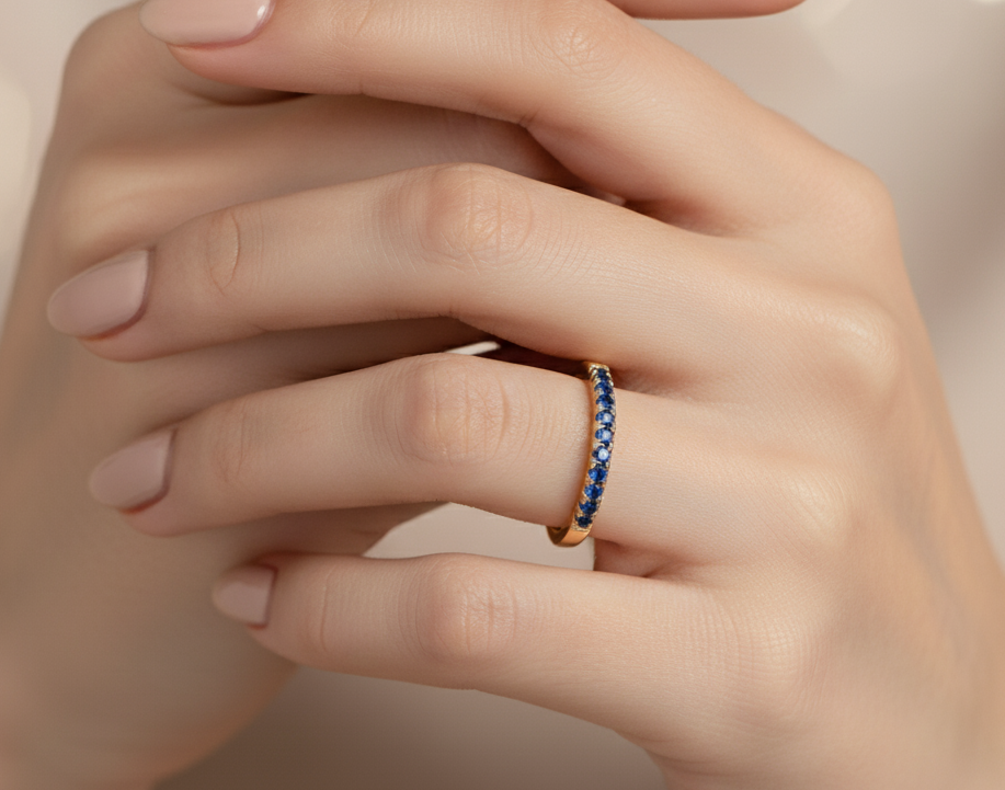 RING 9KY NATURAL SAPPHIRE WEDDING BAND