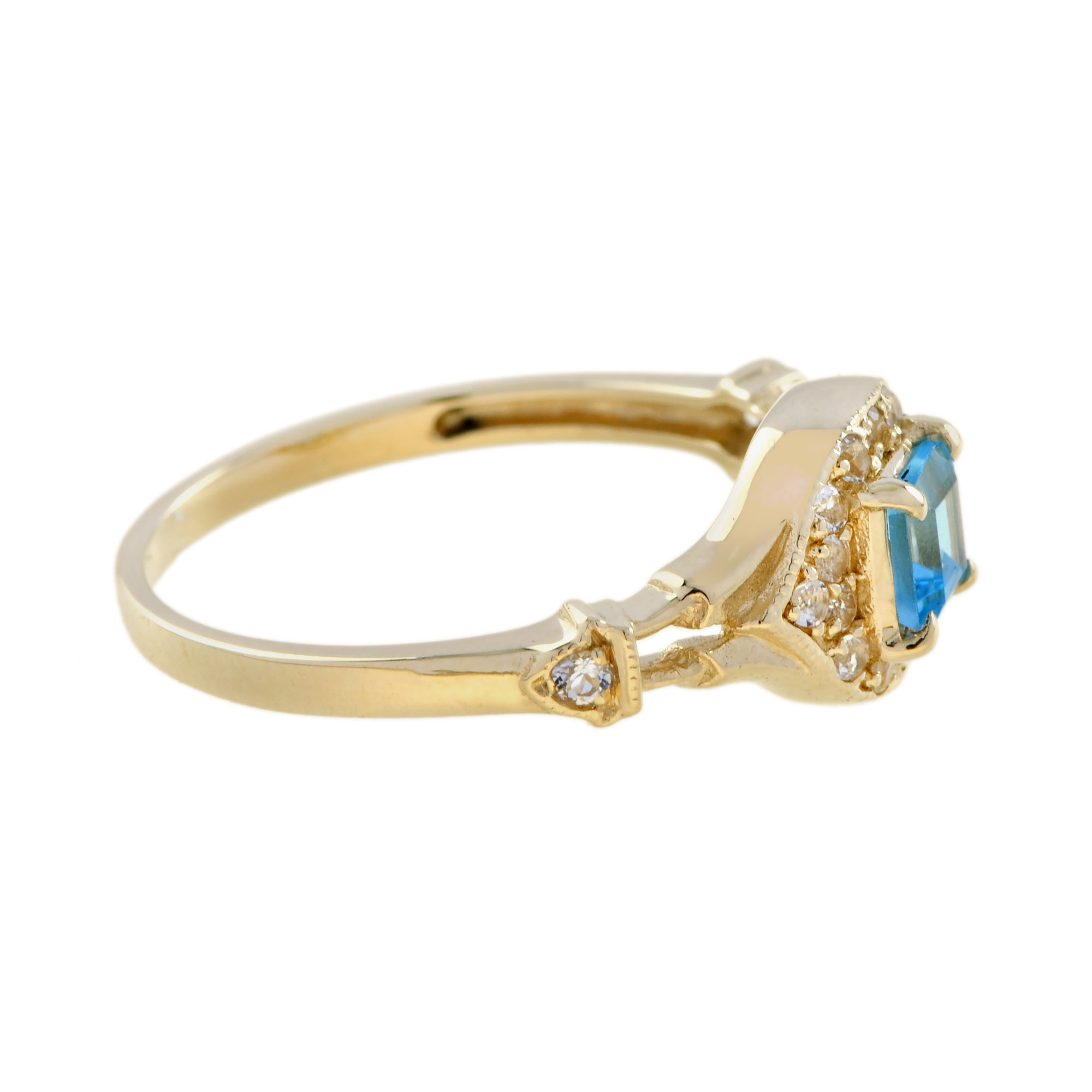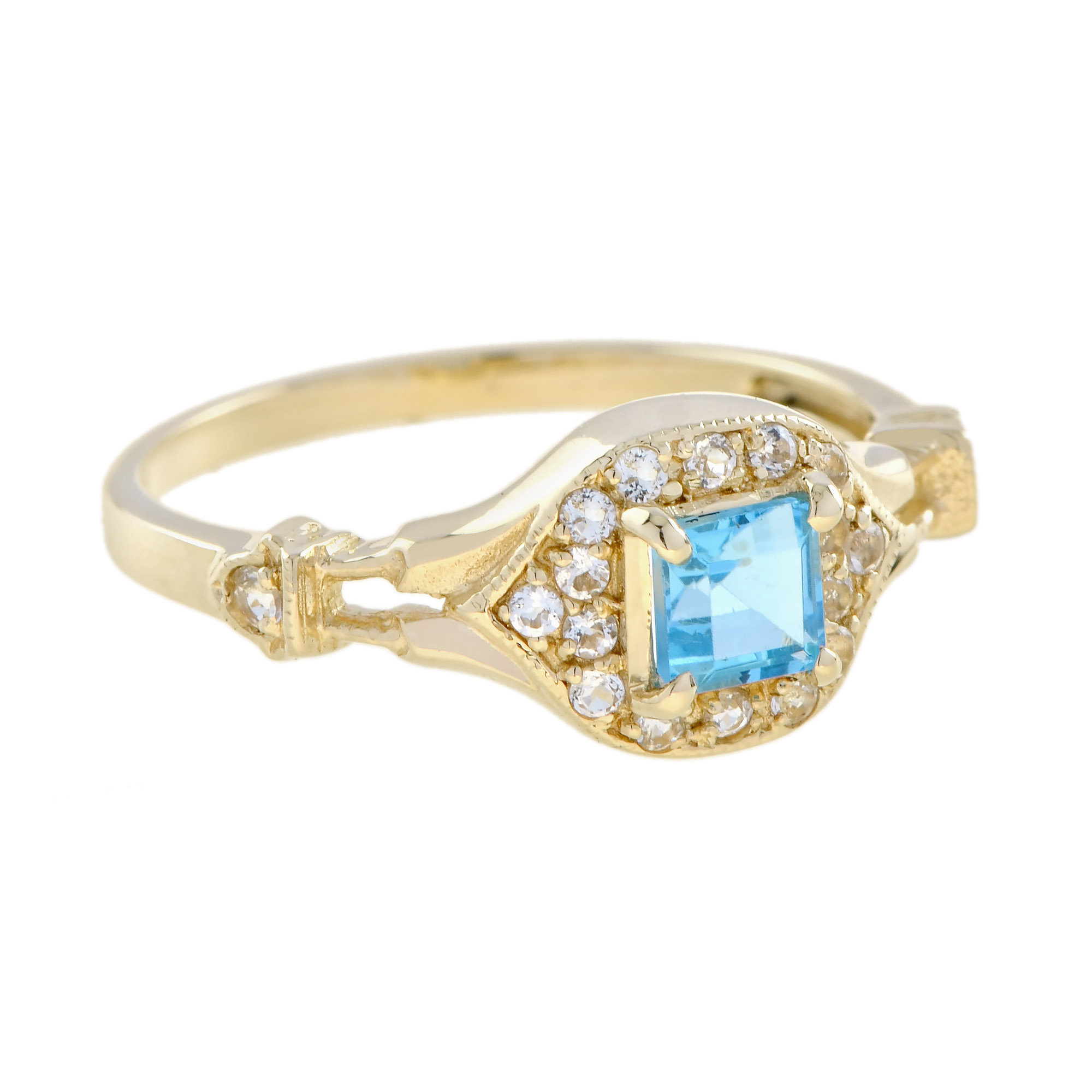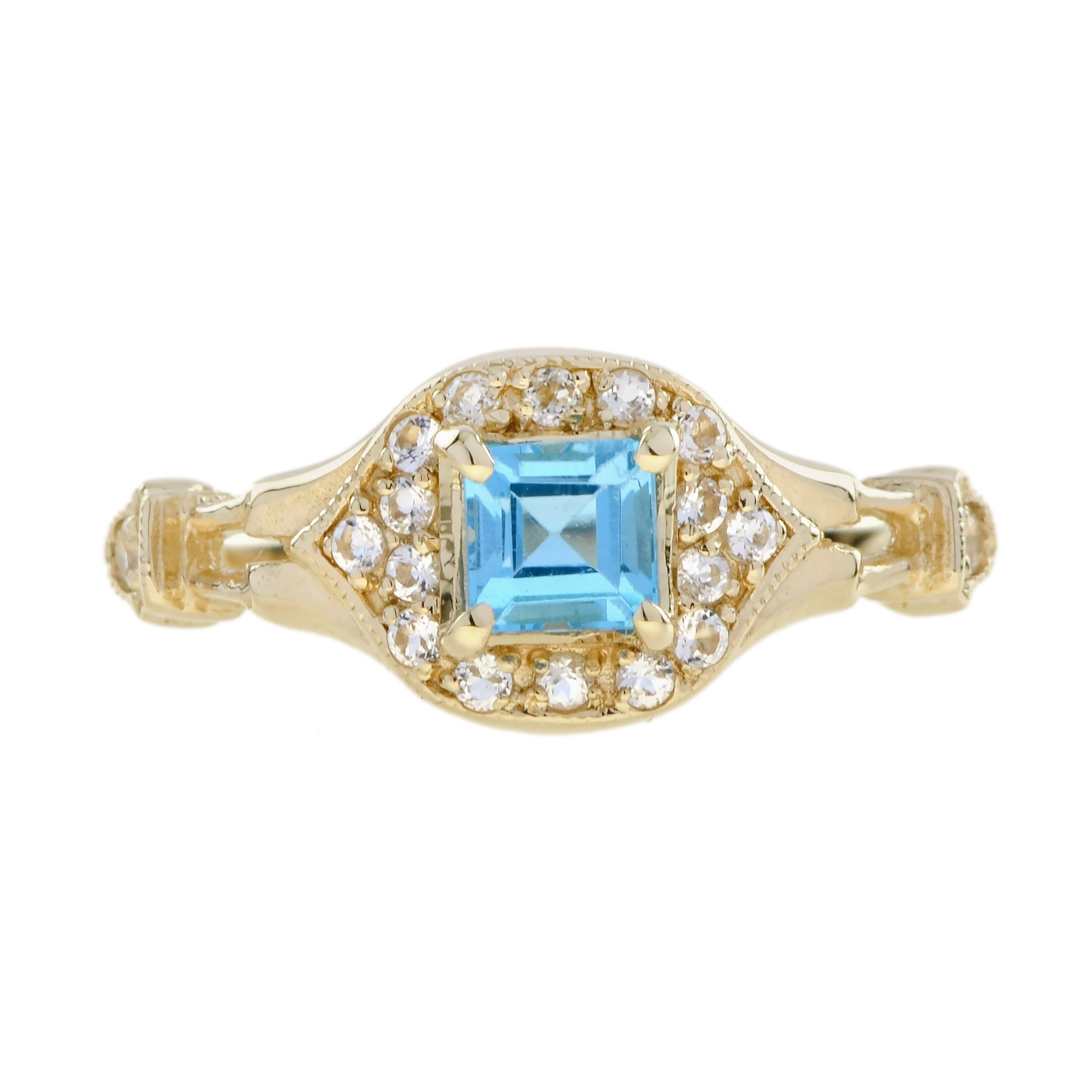 RING 9KY SWISS BLUE TOPAZ WITH WHITE TOPAZ, SQUARE CUT